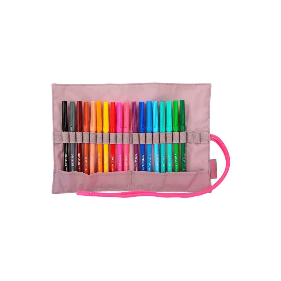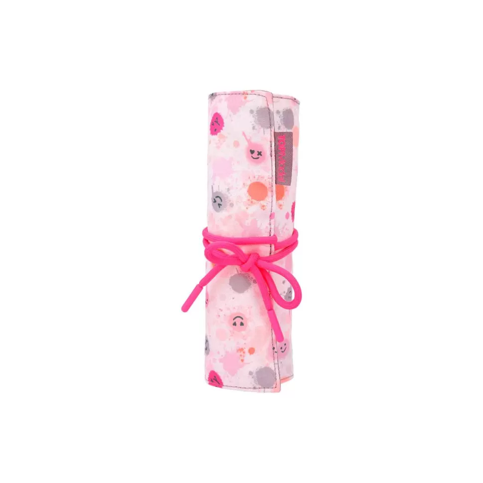 Para Organizar Los Rotuladores Como Una Profesional Del Arte. Desatar La Cinta, Desenrollar Y Elegir Uno De Los 18 Rotuladores De Colores Diferentes. Con Dos Trabillas Elasticas Extra En El Interior. Exterior Decorado Con Estampado Allover De Alegres Y Divertidos Smileys De La Coleccion Happy Together De Topmodel.