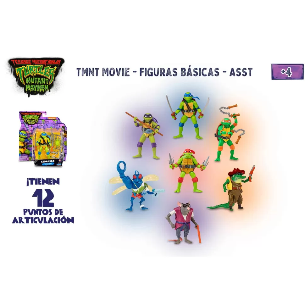 Llegan Las Nuevas Figuras Basadas En La Pelicula De Las Tortugas Ninja De 2023!, Las Figuras De Leonardo, Rafael, Michelangelo, Donatello, Splinter, Baxter Y Leatherhead Miden 7Cm Y Estan Totalmente Articuladas. Cada Una Incluye Sus Accesorios Iconicos De Lucha.